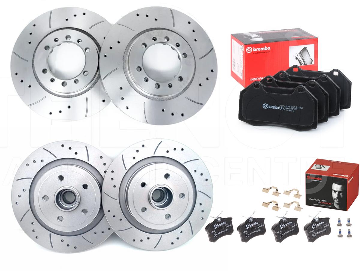 FOR RENAULT CLIO RS 200 FRONT REAR DRILLED BRAKE DISCS BREMBO PADS ABS BEARINGS