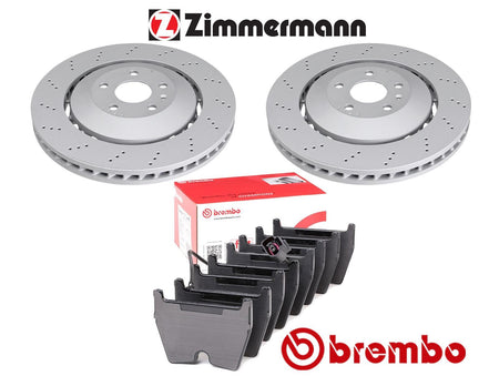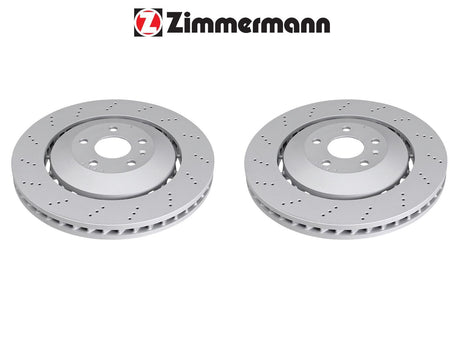 2X FRONT AXLE LEFT RIGHT BRAKE DISCS (ZIMMERMAN) 1X SET OF FRONT BRAKE PADS (BREMBO) FITS AUDI RS Q3 2.5 QUATTRO 2013 -